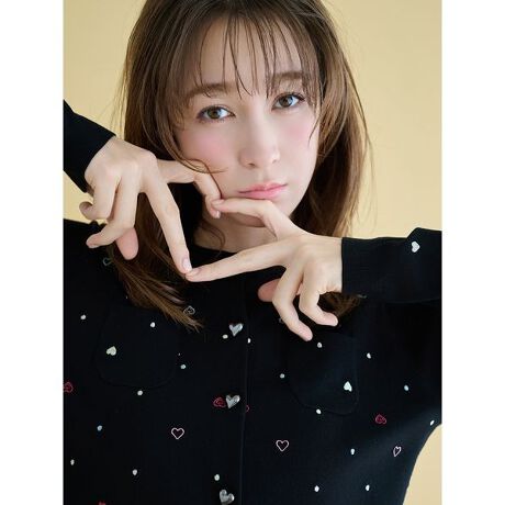 3種類の異なるハートモチーフとドット柄を組み合わせたオリジナルの総柄刺繍カーディガン。