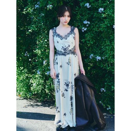 <b>【繊細なレーステープとヴィンテージライクな華やかなフローラルプリントが優雅に交わるロマンティックなサテンキャミワンピース】</b>