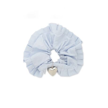 ぷっくりとしたハートチャームが揺れる愛らしいシュシュ。シャツ地を使用した無地と柄のラインナップで、上品さと軽やかさを兼ね備えています。アップスタイルにもダウンスタイルにも合わせやすく、さりげない可愛らしさをプラス。デイリーにも特別な日にも使いやすい、ヘアアレンジのワンポイントアイテムです。
