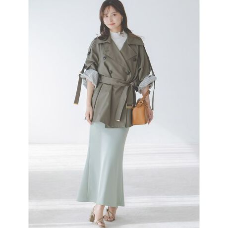 バイアス地なので、落ち感があり、すっきりとしたフォルムでレディな雰囲気に。