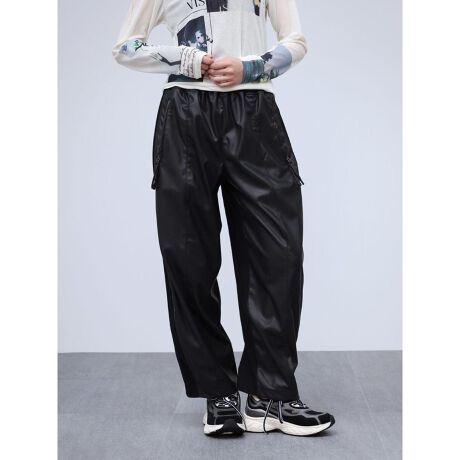 フェイクレザーとスウェットをミックスした、存在感たっぷりの主役級ボトムス。