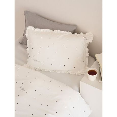 小花柄、ストライプ柄、ハート柄の3種類から柄を選べる、春の新生活にぴったりなシングル寝具2点セットです。ピローケースと掛けカバーの組み合わせなので、ベッド周りの手軽な模様替えにもおすすめ。それぞれの掛けカバーには、それぞれ異なるデザインのブランドロゴも入れました。小花柄とストライプ柄のピローケースは、裏表で異なるリバーシブルのデザイン。春先にかけてちょうど良い柔らかな肌触りの生地を使用しています。色は小花柄のアイボリー、ストライプ柄のブルー、ハート柄のピンクと、ONLINE限定カラーとなるハート柄のライトグレーの全4色。ギフトにもおすすめのアイテムです。