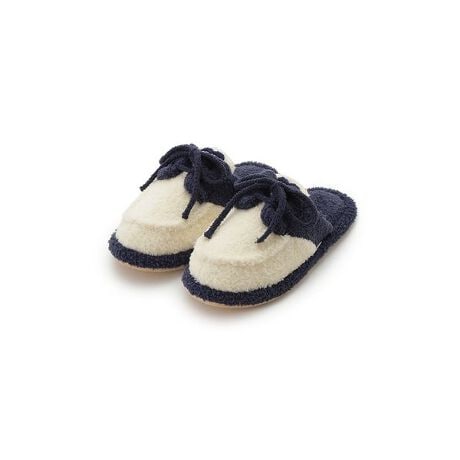 ロゴ入りのハート型サガラ刺繍がポイントになった、ふっくらと柔らかな’ベビモコ’のニットシリーズです。2色使いのアッパーがおしゃれな、デッキシューズ風のルームシューズ。HOMMEらしい遊び心が効いたアイテムで、インテリアにも映えるデザインです。シュータンの部分に甘すぎないハート型のサガラ刺繍を入れて、程良いアイキャッチにしました。同シリーズのカーディガンやウエストウォーマーと合わせたり、同時期に展開するブロードストライプシリーズとコーディネートしてお楽しみください。ギフトにもおすすめです。