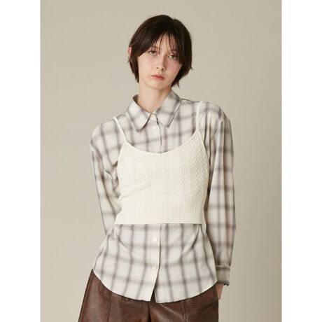 メンズライクなシャツとニットキャミのセットアイテム。シャツは袖にロゴ刺繍をあしらったシンプルデザインで着回し力抜群。ニットキャミはトレンドのリメイク風ディティールで、袖のパーツを落とし込み、前後どちらでも結んで着用できる仕様になっております。コンパクトなニットキャミとオーバーサイズシャツのギャップが今年らしい着こなしを演出。
