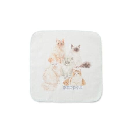 春の訪れを感じさせる、明るいピケカラーをまとったキャットモチーフの雑貨シリーズです。毛色の違う5匹の猫たちをプリントした、猫の日にもぴったりのハンドタオル。それぞれのポーズやもふもふの毛並み、表情の愛らしさまでこだわったスペシャルな1枚になっています。同シリーズのルームウェアや雑貨を合わせたり、猫の日に向けたギフトにもおすすめのアイテムです。
