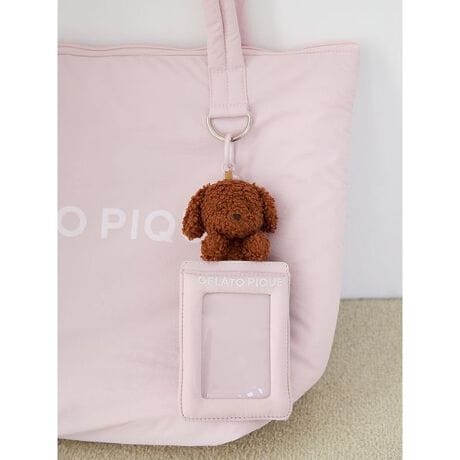 ピケらしい淡いパステルカラーのロゴ入りカードケースに、ふわもこのトイプードルのぬいぐるみを乗せました。中綿入りの軽やかなナイロンパフ素材を使用しており、バッグのハンドルなどに装着も可能。ICカードを入れたり、お気に入りのカードを入れて可愛くデコレーションをお楽しみいただけます。色は淡いトーンのピンクとブルーの2色をご用意。同じ素材を使用したショルダーバッグ、トートバッグとのコーディネートもおすすめです。