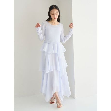 ワンピースのティアードスカート部分は、艶感のある軽やかなオーガンジー素材を使用。