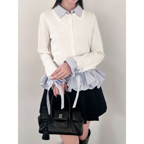 <b>【シャツドッキングで二重襟と裾のラッフルが今季らしく華やかなヘムボリュームニットプルオーバー】</b>