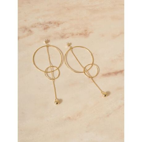 華奢で大きめのゴールドフープに小さなゴールドフープが重なり、さらに小さなボールチャームをあしらった華奢なゴールドロングチェーンが優雅に揺れる、エレガントなアッセンブルサークルメタルピアスが届きました。