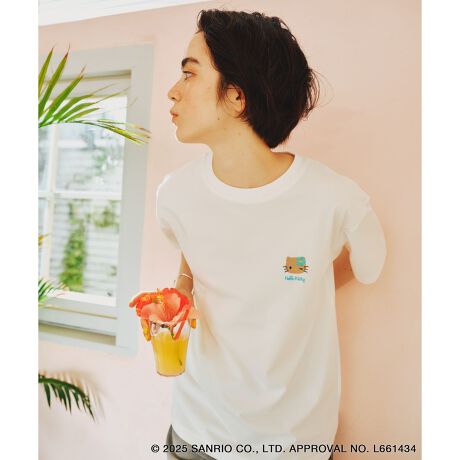 ・夏らしく日焼けをしたハローキティの半袖Tシャツ。