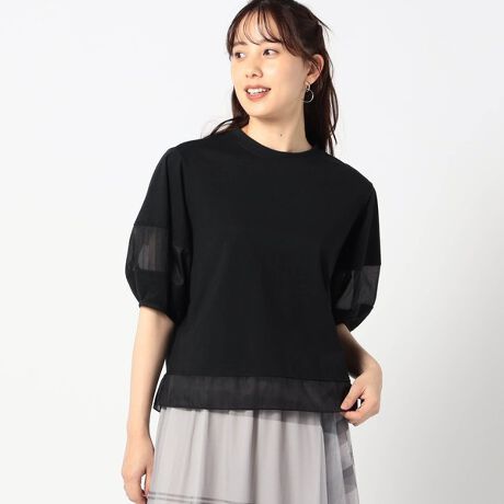 袖と裾で切り替えられた、オーガンジーの透け感が魅力のカットソーです。