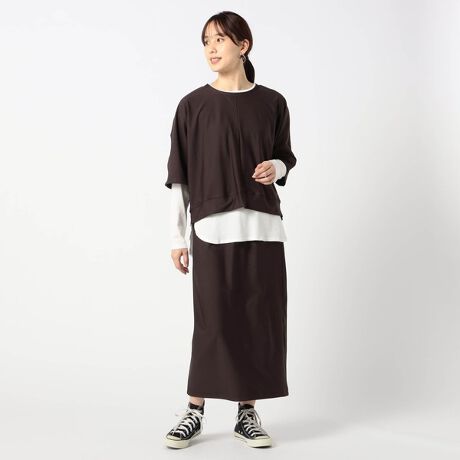 13ブラウン/24クリーム/49ブラック:プルオーバー:ポリエステル75% ポリウレタン25% スカート:ポリエステル75% ポリウレタン25%