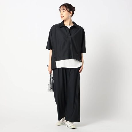 トップスが衿のあるスキッパーが型なので、程よい抜け感とリラックス感を両立出来る万能アイテムです。
