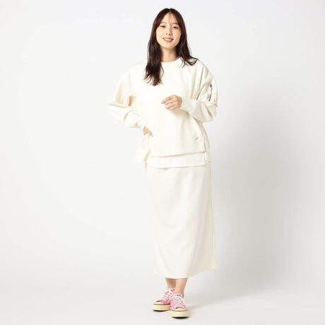 アクセントになるMA-1ポケットが付いたトップスに、シンプルなスカートをセットにした、日常使いに最適なセットアップです。