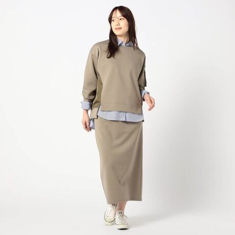 アクセントになるMA-1ポケットが付いたトップスに、シンプルなスカートをセットにした、日常使いに最適なセットアップです。