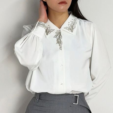 ボタニカルな刺繍が各所にちりばめられたブラウスが登場。