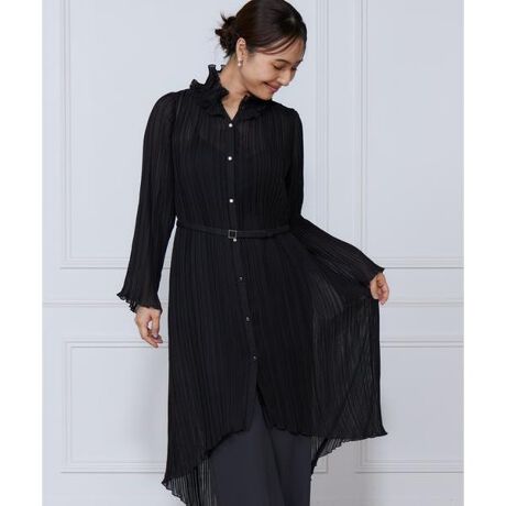 ■デザイン総プリーツのロングブラウス。上半身のパールの釦が上品で衿元のプリーツフリルがポイントになり、首元をゴージャスに演出し美しく見せてくれます。細かいプリーツ加工の縦見えで着やせ効果を狙いつつ、サイズの許容もあります。ボディはストンとしたストレートなシルエットで、細身のテーパードパンツを合わせてシャープでエレガント、ワイドパンツを合わせて柔らかい雰囲気の着こなしなどのレイヤードスタイルが楽しめます。・水洗い可■サンプル撮影商品画像の商品はサンプルです。実際の商品とはサイズや色味、素材、デザイン等の仕様が若干変更になる場合がございます。■カラーについては、可能な限り実際の商品に近いカラーで撮影をおこなっておりますが、照明の関係により実際の製品とは色味が違って見える場合があります。またパソコン・スマートフォンなどの環境により、若干製品と画像のカラーが異なる場合もございます。現物と画像のカラー差異については返品理由となりませんので、予めご了承ください。■サイズ表記はあくまで目安となります。