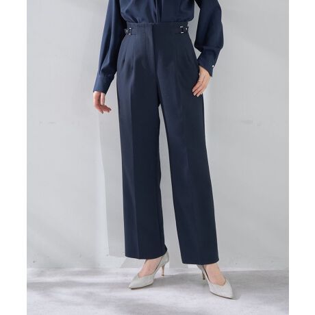 サイドベルテッドデザインがアクセントになったハイウエストパンツ。