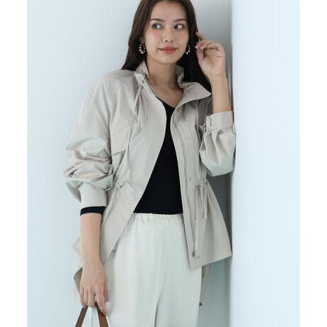 ナチュラルな表面感と軽さが魅力のツイル素材を使用したマウンテンパーカー。スタンドカラーはギャザー入りで顔まわりを柔らかく演出。ゆったりシルエットながらウエストスピンドルでメリハリをつけられ、後ろ身頃はヨーク切り替えからふんわり広がるフェミニンなラインに。前後差のあるヘムが軽やかさを添え、サイドのドットボタンやメタルパーツがアクセントの、機能性とデザイン性を兼ね備えた一着です。