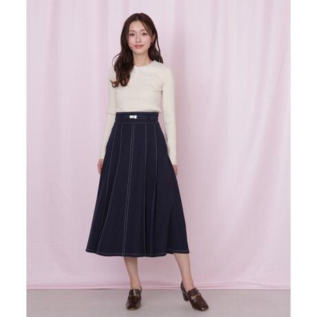 配色ステッチとベルトでメリハリを出したフレアスカート。スタイル良く見せてくれるシルエットです。トップスを選ばずに着回せるのも嬉しい。同素材のジャケット(店舗商品番号125-6150004)とのセットアップもおすすめです。※撮影時照明の関係により、色味が違って見える場合がございます。またパソコン・スマートフォンなどの環境により、若干製品と画像のカラーが異なる場合もございます。予めご了承ください。商品の色味は、商品単品画像をご参照下さい。※商品画像はサンプルのため、色味やサイズ等の仕様に変更がある場合がございますので、予めご了承ください。