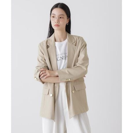 かっちりしすぎずカジュアルすぎない絶妙なバランスのダブルブレストジャケット。洗練されたアクセントを効かせるゴールドボタンが、エレガントな雰囲気を演出。サッと羽織るだけできちんと様になるから、通勤からちょっとしたお出掛けまで重宝します。
