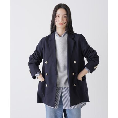 かっちりしすぎずカジュアルすぎない絶妙なバランスのダブルブレストジャケット。洗練されたアクセントを効かせるゴールドボタンが、エレガントな雰囲気を演出。サッと羽織るだけできちんと様になるから、通勤からちょっとしたお出掛けまで重宝します。