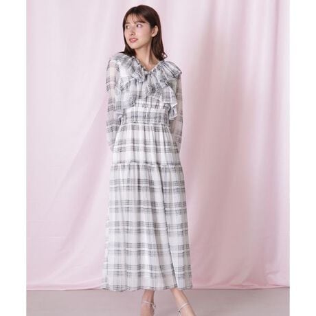 シアーチェック柄素材とクロスフリルを組み合わせた華やかなデザインワンピース。オフショルダーにも着られる2wayデザインなので、気分やシーンに合わせてアレンジできます。ほどよい透け感が軽やかさを出し、フェミニンムード抜群。ウエストラインをキレイに見せてくれるのでスタイルアップも叶います。デートやお出かけに映える主役級ワンピースです。※撮影時照明の関係により、色味が違って見える場合がございます。またパソコン・スマートフォンなどの環境により、若干製品と画像のカラーが異なる場合もございます。予めご了承ください。商品の色味は、商品単品画像をご参照下さい。※商品画像はサンプルのため、色味やサイズ等の仕様に変更がある場合がございますので、予めご了承ください。
