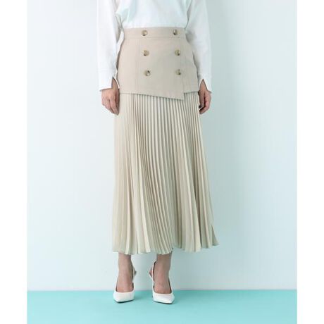 ウエストからヒップまではすっきりとしたシルエットでまとめ、トレンチコートのようなディテールがシャープで洗練された雰囲気を演出するスカート。ヒップ下の切り替えからはプリーツが軽やかに広がり、動きのあるフェミニンな印象に仕上げました。シンプルなトップスを合わせるだけでもスタイリングがぐっとスタイリッシュに決まり、同素材のソフトオックスショートトレンチ(0316151221)とのセットアップ風の着こなしもおすすめです。