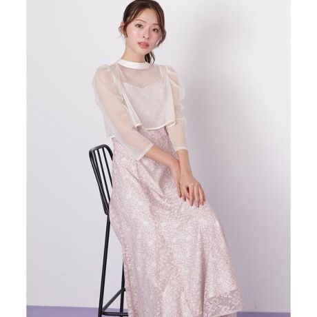 目が細かくて密度のある柔らかいチュールブラウスと、華やかな柄のレースキャミワンピースのセット。ブラウスは前後2way仕様のため、シチュエーションに合わせてリボンを前にしても着用いただけます。ワンピースの肩紐は長さ調整可能。背中が見えすぎず、上品な肌見せになるよう計算されたデザインです。様々な体型の方に合うよう、背中はシャーリング仕様でフィットします。※撮影時照明の関係により、色味が違って見える場合がございます。またパソコン・スマートフォンなどの環境により、若干製品と画像のカラーが異なる場合もございます。予めご了承ください。商品の色味は、商品単品画像をご参照下さい。※商品画像はサンプルのため、色味やサイズ等の仕様に変更がある場合がございますので、予めご了承ください。