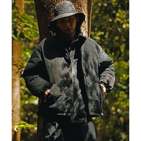 ナイロンタッサーの生地には樹皮の表情をイメージしてプリントを施したシーズナルアイテムも展開しています。