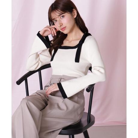 肩リボンと配色ラインがアクセントになった、可憐なデザインニット。コンパクトな丈感でスカート合わせが映え、スタイルアップも叶います。柔らかい風合いで着心地が良く、デイリーに使いやすい一枚。フェミニンにも大人っぽくもアレンジしやすい万能トップスです。アクセサリーいらずで華やぎ、写真映えするアイテムです。※撮影時照明の関係により、色味が違って見える場合がございます。またパソコン・スマートフォンなどの環境により、若干製品と画像のカラーが異なる場合もございます。予めご了承ください。商品の色味は、商品単品画像をご参照下さい。※商品画像はサンプルのため、色味やサイズ等の仕様に変更がある場合がございますので、予めご了承ください。