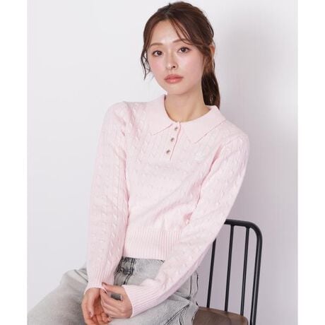 エポ金色ボタンが上品なポロ襟ニット。綿混の糸を使用したケーブル柄は凹凸がくっきりと出て、ほどよくカジュアルなタッチのニットになっています。襟もニットなので、様々なボトムスと合わせやすいデザイン。春らしいカラー展開もポイントで、コーディネートを新鮮に見せてくれます。※撮影時照明の関係により、色味が違って見える場合がございます。またパソコン・スマートフォンなどの環境により、若干製品と画像のカラーが異なる場合もございます。予めご了承ください。商品の色味は、商品単品画像をご参照下さい。※商品画像はサンプルのため、色味やサイズ等の仕様に変更がある場合がございますので、予めご了承ください。