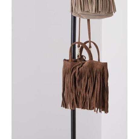 スエードのフリンジディテールが目を引く2WAYショルダーバッグ。存在感あるマテリアルがアクセサリーのように映えるので、日常から特別なシーンまで様見え。持ち歩くたびに風に揺れるフリンジが、洗練されたムードを演出してくれます。