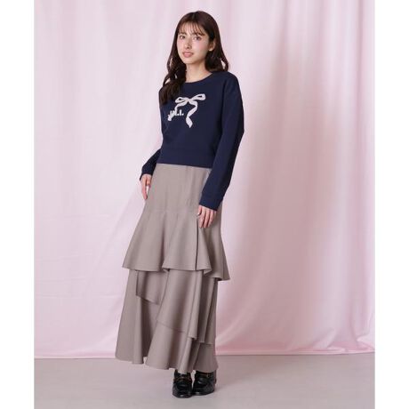 ストレッチ感とほどよい厚みのある生地を使用したアシンメトリーデザインのティアードスカート。裏地がないので暑い時期まで着回せる万能アイテムです。腰まわりの適度なフィット感とナローシルエットで大人っぽさを演出。ほどよいカジュアル感とキレイめなシルエットが絶妙なポイントです。フリルトリムニット(店舗商品番号125-6170024)と相性抜群。インディゴカラーはデニム見えする素材です。※撮影時照明の関係により、色味が違って見える場合がございます。またパソコン・スマートフォンなどの環境により、若干製品と画像のカラーが異なる場合もございます。予めご了承ください。商品の色味は、商品単品画像をご参照下さい。※商品画像はサンプルのため、色味やサイズ等の仕様に変更がある場合がございますので、予めご了承ください。
