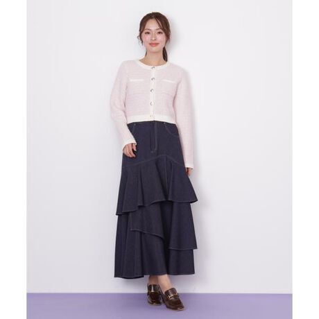ストレッチ感とほどよい厚みのある生地を使用したアシンメトリーデザインのティアードスカート。裏地がないので暑い時期まで着回せる万能アイテムです。腰まわりの適度なフィット感とナローシルエットで大人っぽさを演出。ほどよいカジュアル感とキレイめなシルエットが絶妙なポイントです。フリルトリムニット(店舗商品番号125-6170024)と相性抜群。インディゴカラーはデニム見えする素材です。※撮影時照明の関係により、色味が違って見える場合がございます。またパソコン・スマートフォンなどの環境により、若干製品と画像のカラーが異なる場合もございます。予めご了承ください。商品の色味は、商品単品画像をご参照下さい。※商品画像はサンプルのため、色味やサイズ等の仕様に変更がある場合がございますので、予めご了承ください。