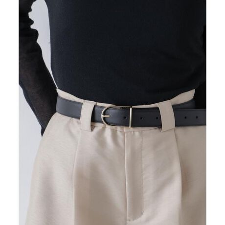 クラフツマンシップが息づくレザーベルト。上質な牛革を使用し、端正な太幅シルエットに繊細なオリジナルバックルを合わせることで、マニッシュさと洗練されたエレガンスを漂わせる佇まいに。