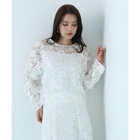 繊細でフェミニンな刺繍レースを贅沢に使用したブラウス。ゆったりとしたシルエットに、裾や袖へあしらったスカラップが軽やかな動きを添え、着るだけで華やかな印象に仕上がります。程よいシアー感が肌を上品に透かし、女性らしい透明感を演出する一枚です。
