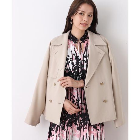 すっきりとした表面感をもつソフトオックス素材で仕立てたショートトレンチ。上品な質感がトラッドになりすぎず、女性らしいスタイリングへと導いてくれる一着です。ラグランスリーブとややゆとりのあるシルエットで、インナーを選ばず軽やかに羽織れるのも魅力。袖口はボタンでサイズ調整ができ、きゅっと締めてターンアップすることで、裏地のストライプをアクセントにしたスタイリッシュな着こなしが楽しめます。同素材のスカートと合わせたセットアップ風のスタイリングもおすすめです。