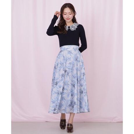 オリジナルの大花柄が華やかなフラワープリントスカート。裾まわりはボリュームがあり、歩くたびに揺れるキレイなシルエットです。後ろウエストはゴム仕様でフィット。チョーカー付きニット(店舗商品番号125-6170026)にジャケットやコート合わせがおすすめです。※撮影時照明の関係により、色味が違って見える場合がございます。またパソコン・スマートフォンなどの環境により、若干製品と画像のカラーが異なる場合もございます。予めご了承ください。商品の色味は、商品単品画像をご参照下さい。※商品画像はサンプルのため、色味やサイズ等の仕様に変更がある場合がございますので、予めご了承ください。