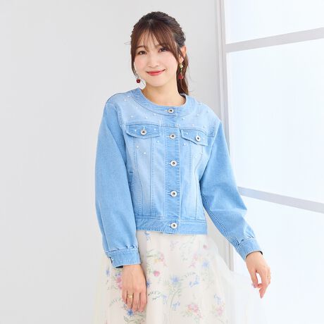 ・パールスタッズをあしらったデザインで、カジュアルデニムを華やかにアップデート