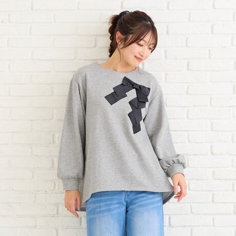 ・胸元にグログランリボンで立体的なリボンをあしらったオーバーサイズのプルオーバー