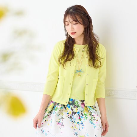 秋に人気のアンサンブルニットが春素材になって登場