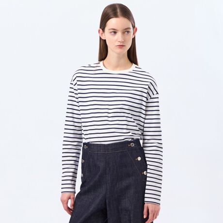 サイドに深めのスリットの入ったラウンドヘムのデザインカットソーです。一枚着はもちろん、レイヤードアイテムとしても重宝いただけます。