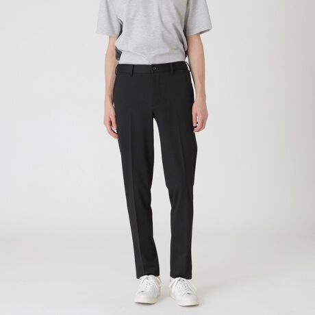 フランスのテキスタイルメーカーCARREMAN(キャリーマン)社のハニカム組織ハイストレッチジャージー素材を使用したイージートラウザーズです。シャープな印象を持たせる細身のシルエットながらも、ウエスト部分にはゴムシャーリングを施し快適な履き心地。シンプルなデザインの為、コーディネートを選ばず幅広いシーンで着用が可能です。