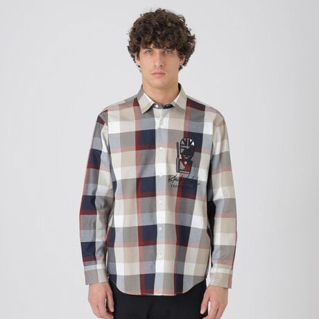 全面にアイコニックなクレストブリッジチェックをあしらったレギュラーカラーシャツ。左胸にはイギリスを象徴する「ガーズマン(衛兵)」を同素材のアップリケ刺繍で表現。レーザーカットを行いながら刺繍を行う特殊な手法で、立体感があり程良い存在感をプラスしています。