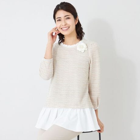 カットツイードとタフタ素材をドッキングした、素材感のコントラストが魅力の一枚。配色によってカジュアルにもエレガントにも幅広いスタイリングが可能なチュニックです。