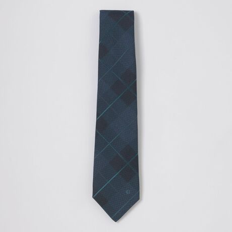 [型番:51825743__]【さりげないトーナルチェックタイ】シルク100%を使用したトーナルチェックタイ。織り柄でチェックを表現しているので、立体感のある上品な雰囲気がVゾーンを華やかに演出します。裏地にはジャカードで表現したブランドロゴを配置し、細部までこだわった逸品です。※掲載写真と柄の出方が異なる場合がございます。