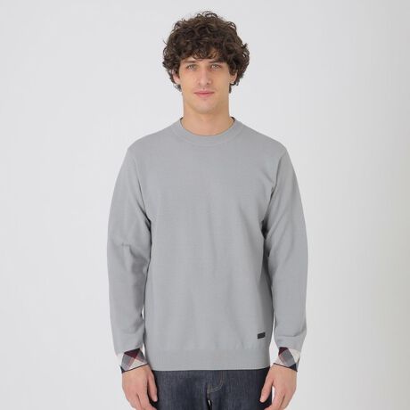 【袖口&衿裏にチェック柄でさり気ないアクセントをあしらったクルーネック】