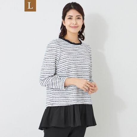 カットツイードとタフタ素材をドッキングした、素材感のコントラストが魅力の一枚。配色によってカジュアルにもエレガントにも幅広いスタイリングが可能なチュニックです。