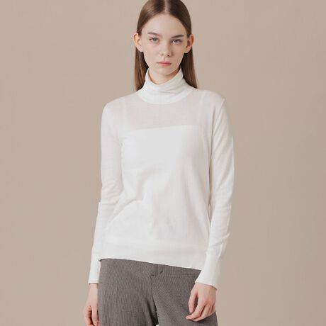 衿が綺麗に立つ様、繊細に仕立てたハイネックニットです。天然素材で、肌に優しく軽い着心地です。さまざまなコーデイネートのインナーに活躍する汎用性の高いアイテムです。
